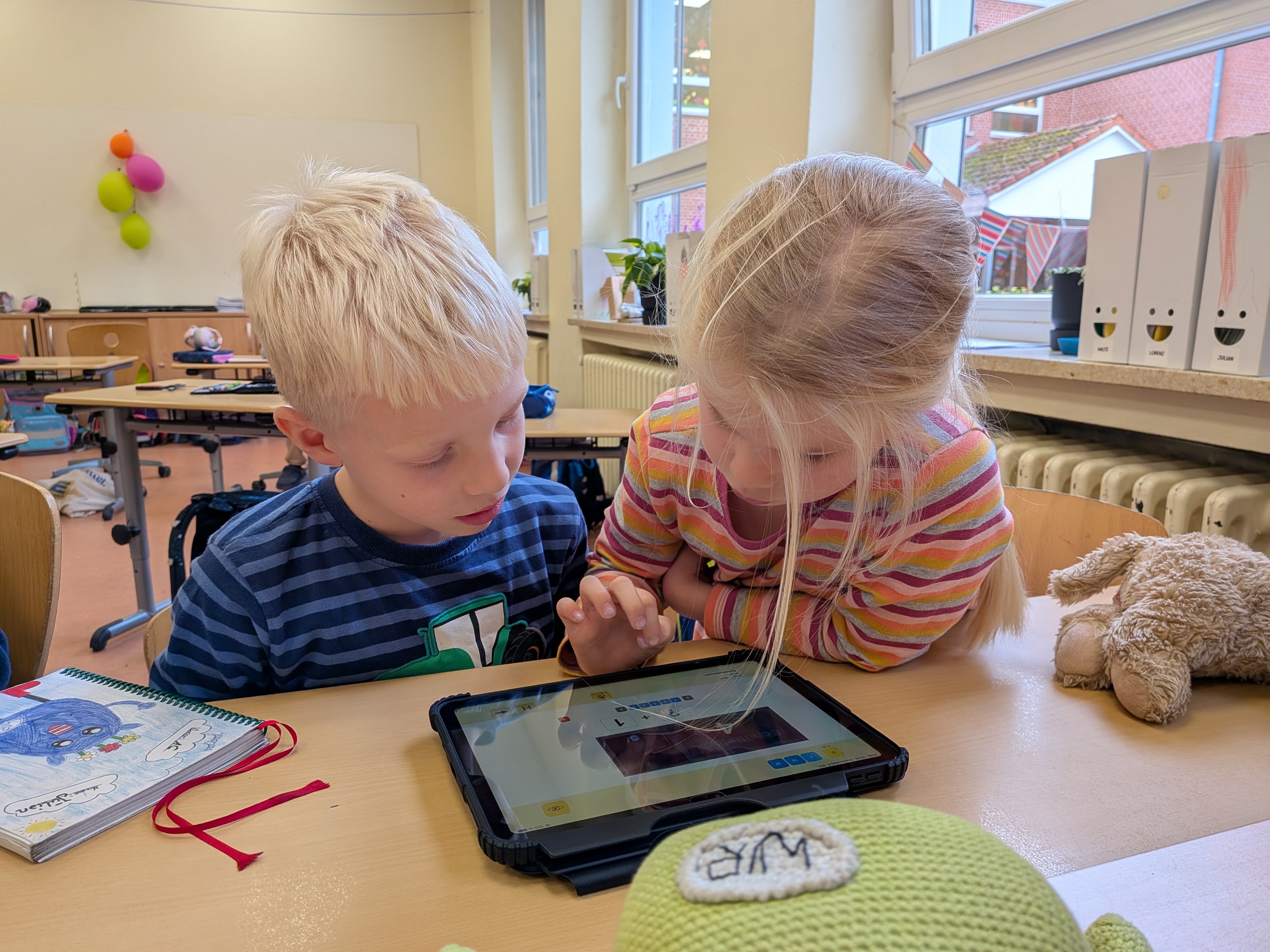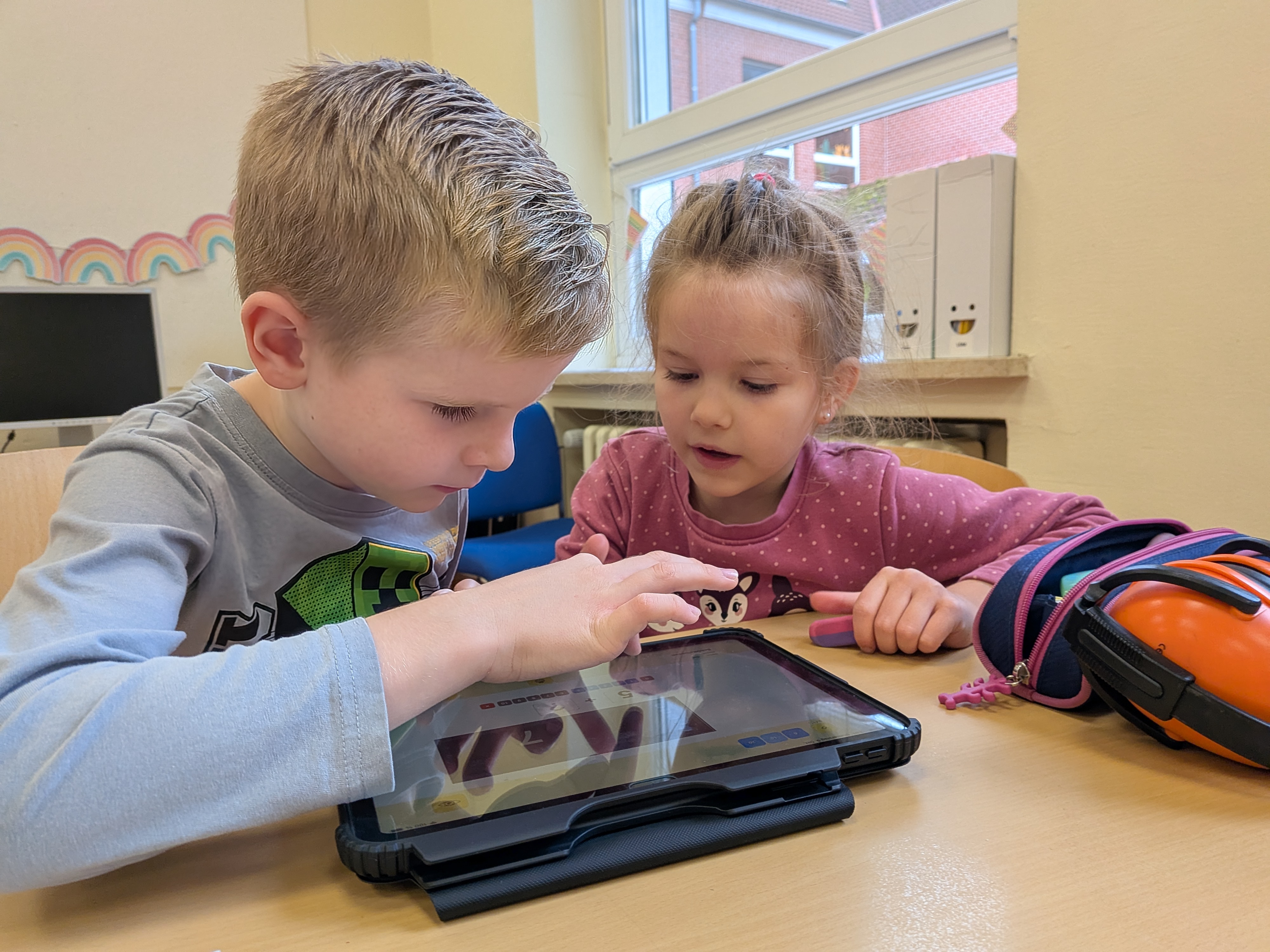 Wir haben die ganze Schule kennengelernt, den Schulhof und den Schulgarten erobert sowie die Mensa und die Bücherei besucht. Den Computerraum kennen wir auch und auch die Tablets konnten wir schon ausprobieren.