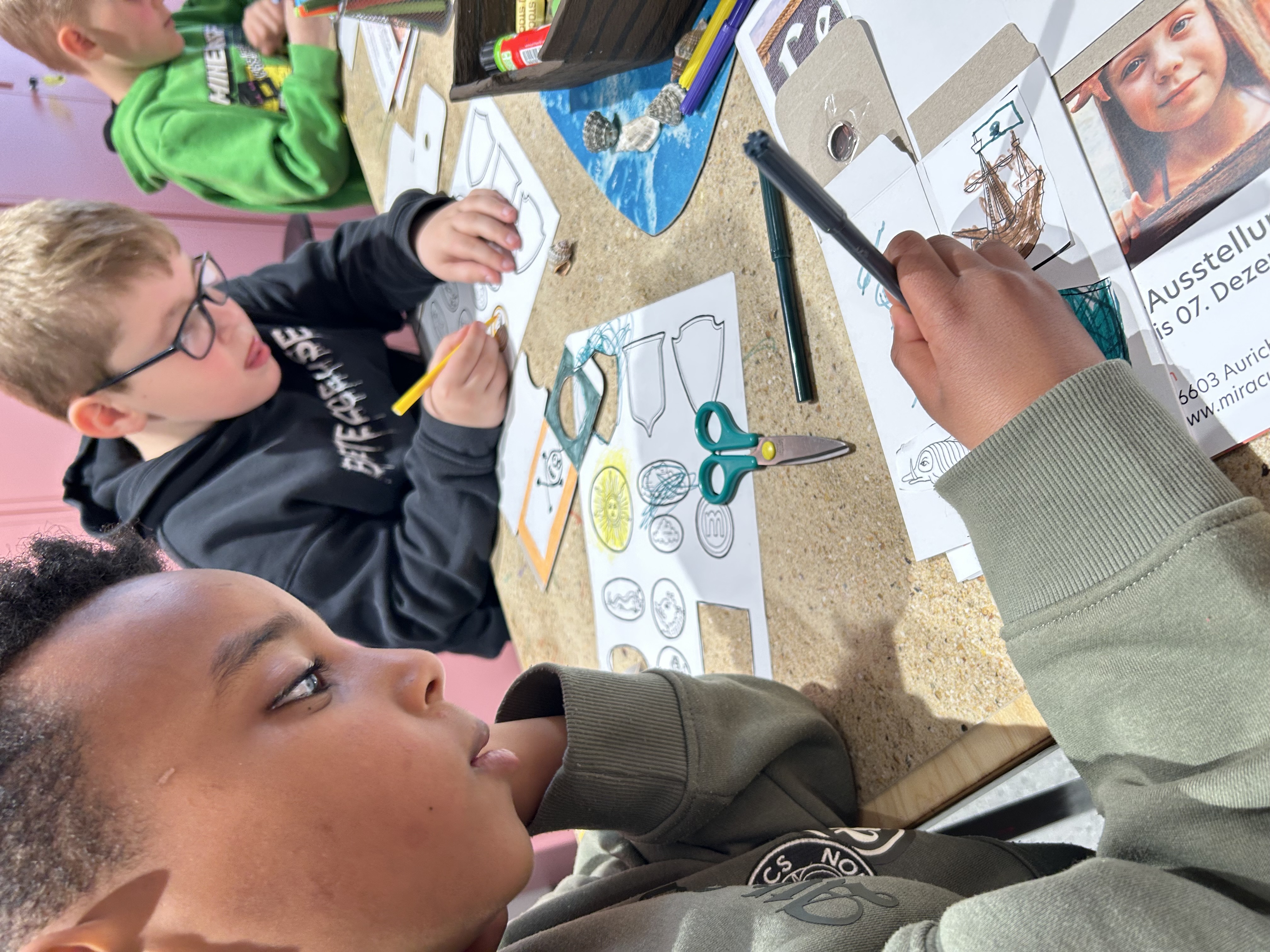 Am 3. April waren wir mit dem 1. Jahrgang in Aurich. Dort besuchten wir das MachMitMuseum mit dem Thema "Leinen los - Sagen, Segel, Seemansgarn" und die Kunstschule. Im Museum konnten die Kinder alles ausprobieren und erkunden, sich verkleiden und vieles mehr. Anschließend haben wir auf dem Marktplatz mit der anderen 1. Klasse gemeinsam gefrühstückt. Im Anschluss ging es weiter in die Kunstschule. Dort wurden passend zu dem Thema Fernrohre gebastelt und gestaltet. Es war ein schöner Vormittag, den alle sehr genossen haben.