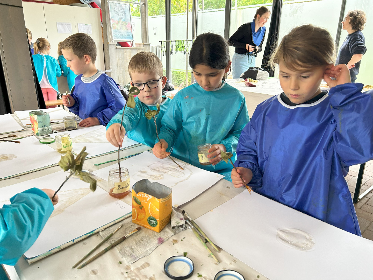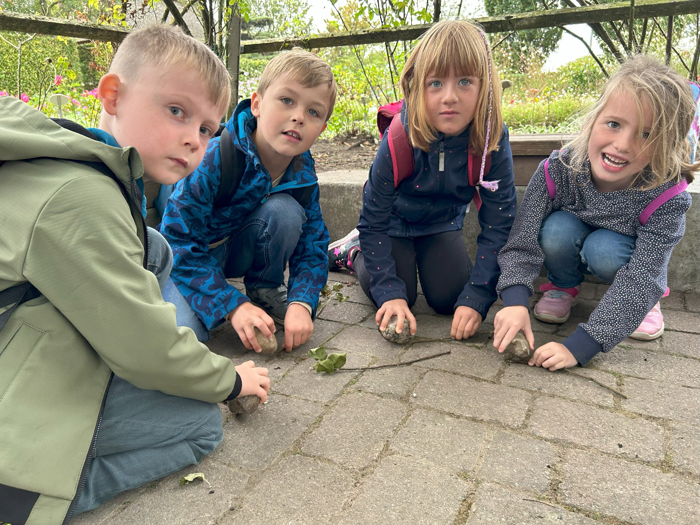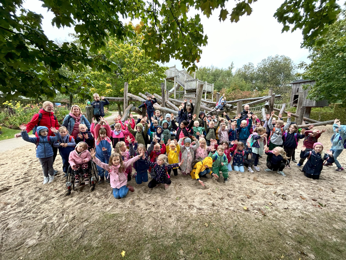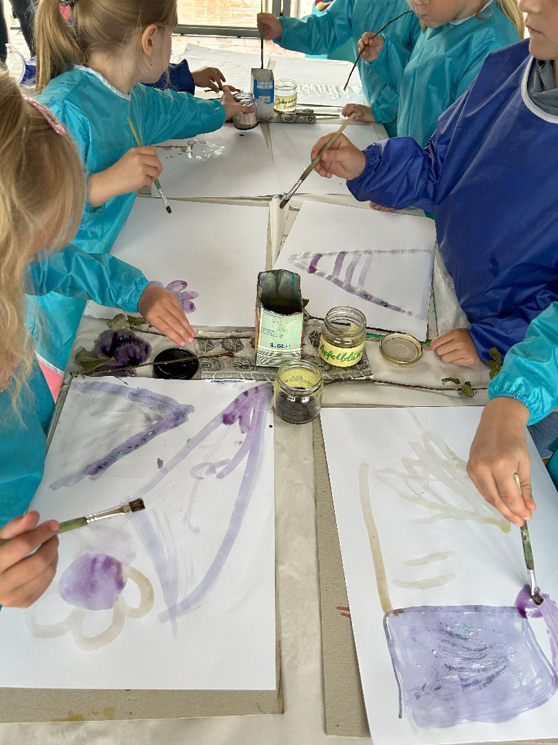 Nun sind wir schon sieben Wochen in der Schule und am vergangenen Donnerstag haben wir unseren ersten gemeinsamen Ausflug gemacht! Schon seit Tagen war die Vorfreude riesengroß und nun war es endlich soweit! Gemeinsam mit allen ersten Klassen waren wir im Park der Gärten in Bad Zwischenahn. Trotz Regen hatten wir alle einen wunderschönen Tag! Pünktlich um viertel vor neun sind wir mit dem Bus losgefahren. Dort angekommen wurden wir von den freundlichen Mitarbeitern des Parks begrüßt. Wir sind in Gruppen durch den Park spaziert und haben viel über die Pflanzen und Tiere im Garten erfahren. Wir haben den Park mit allen Sinnen wahrgenommen und wir haben aus vielen verschiedenen Pflanzen Farben hergestellt. Mit den Farben und einem selbst hergestellten Pinsel aus einem Apfelzweig haben wir im Anschluss tolle Bilder gemalt. Zum Schluss waren wir alle noch auf dem Kletterspielplatz. Der Regen und das Wetter haben uns nichts ausgemacht – unser erster Ausflug war einfach toll!