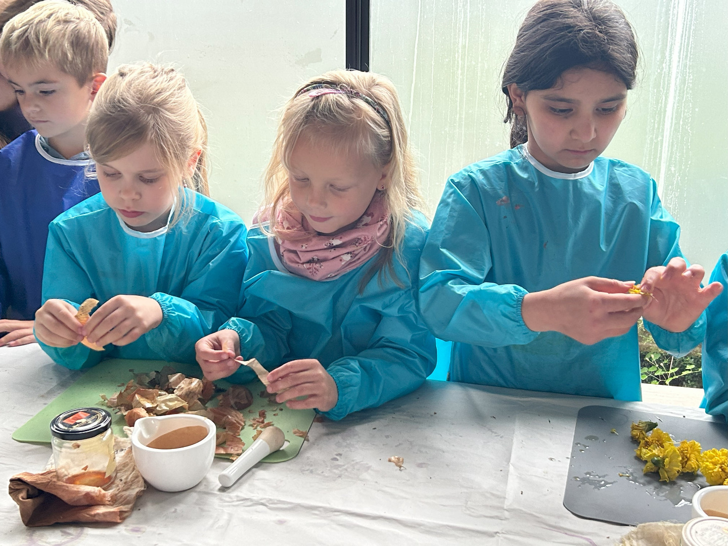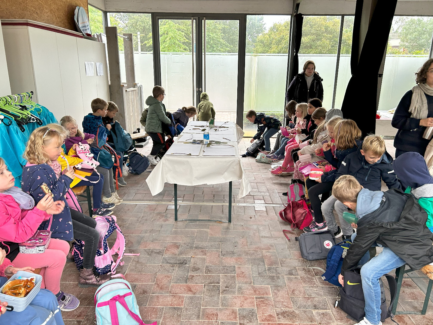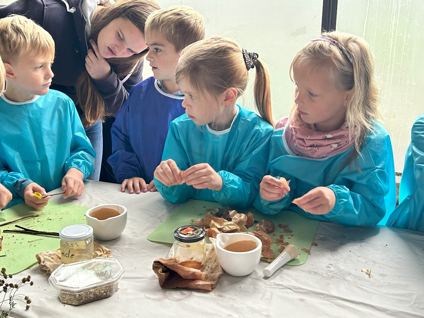 Nun sind wir schon sieben Wochen in der Schule und am vergangenen Donnerstag haben wir unseren ersten gemeinsamen Ausflug gemacht! Schon seit Tagen war die Vorfreude riesengroß und nun war es endlich soweit! Gemeinsam mit allen ersten Klassen waren wir im Park der Gärten in Bad Zwischenahn. Trotz Regen hatten wir alle einen wunderschönen Tag! Pünktlich um viertel vor neun sind wir mit dem Bus losgefahren. Dort angekommen wurden wir von den freundlichen Mitarbeitern des Parks begrüßt. Wir sind in Gruppen durch den Park spaziert und haben viel über die Pflanzen und Tiere im Garten erfahren. Wir haben den Park mit allen Sinnen wahrgenommen und wir haben aus vielen verschiedenen Pflanzen Farben hergestellt. Mit den Farben und einem selbst hergestellten Pinsel aus einem Apfelzweig haben wir im Anschluss tolle Bilder gemalt. Zum Schluss waren wir alle noch auf dem Kletterspielplatz. Der Regen und das Wetter haben uns nichts ausgemacht – unser erster Ausflug war einfach toll!