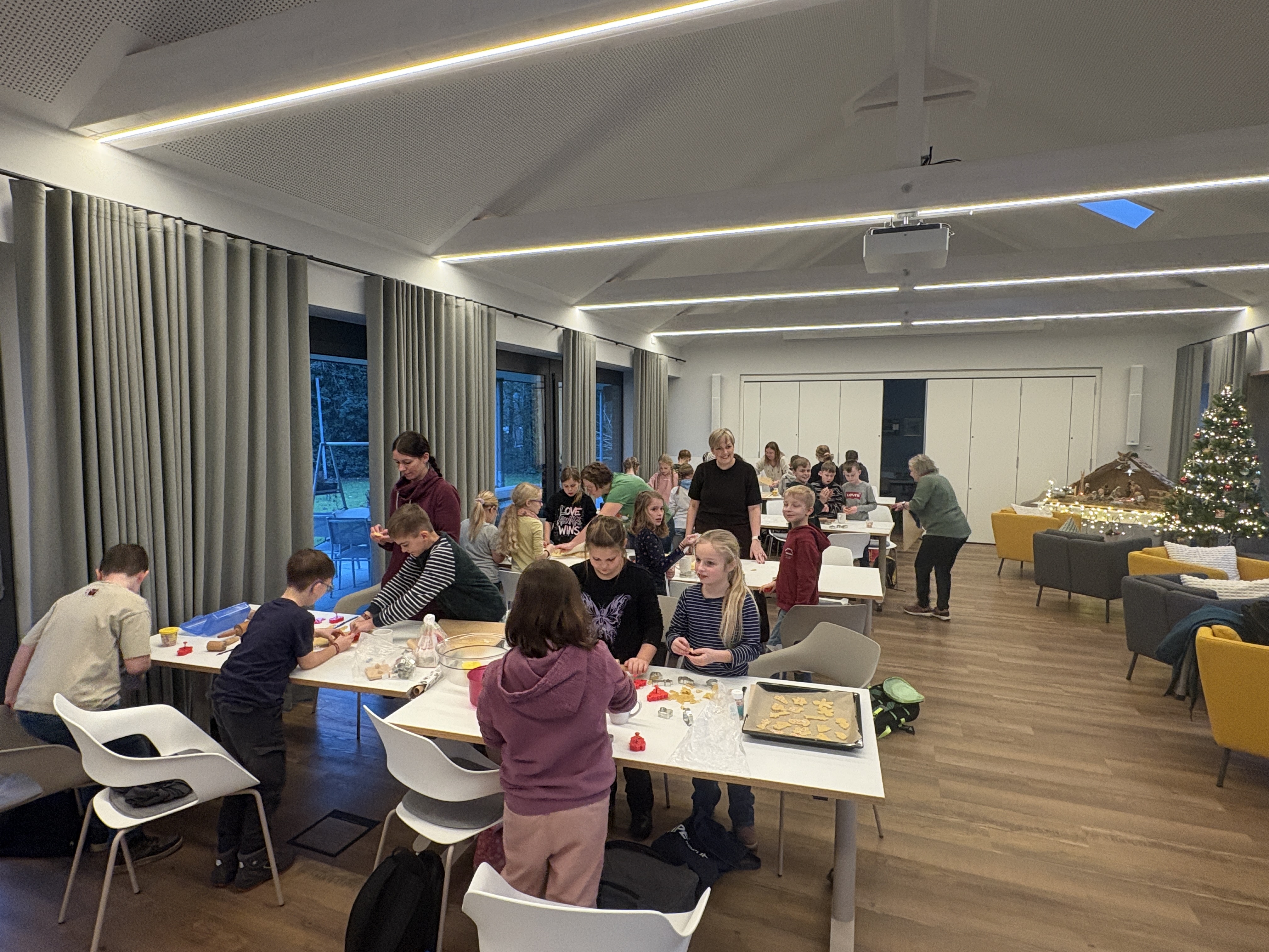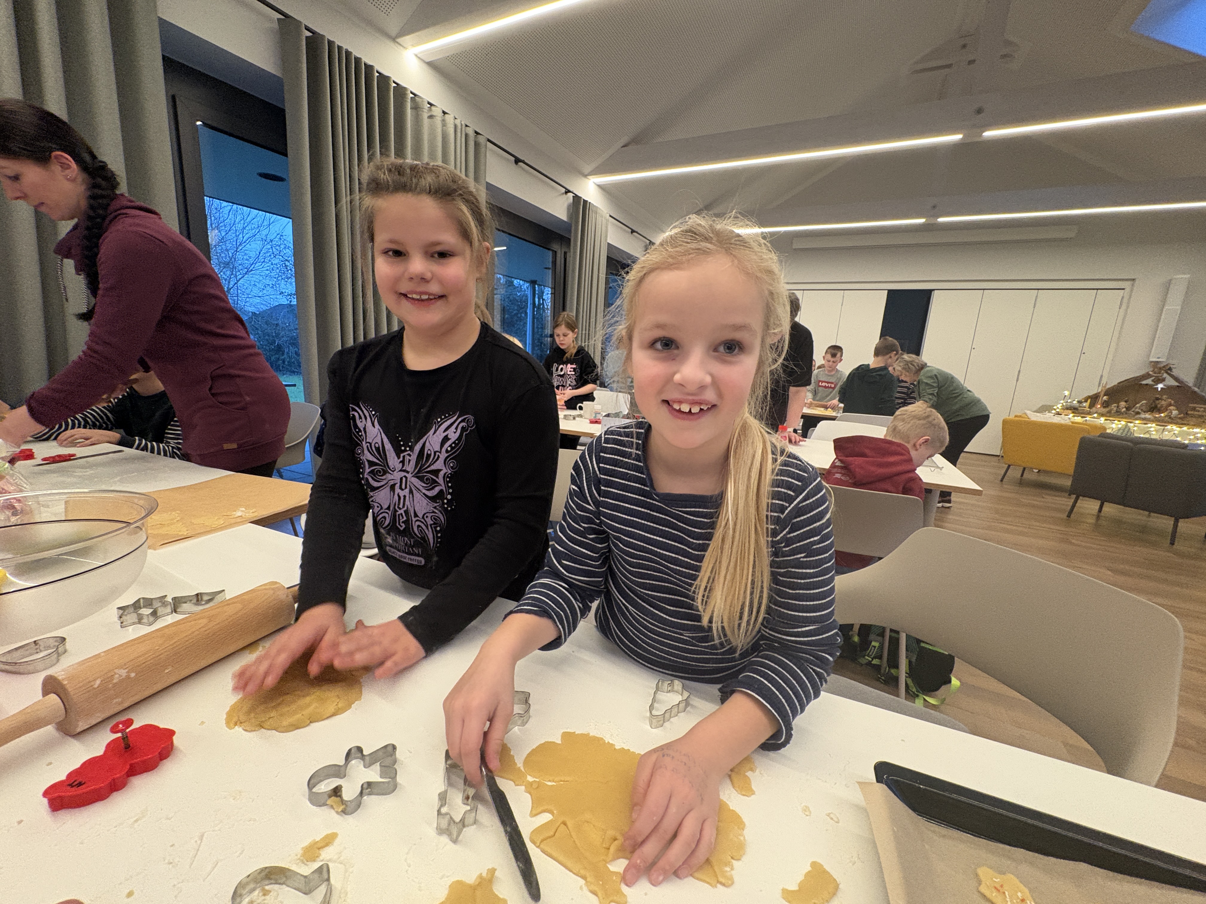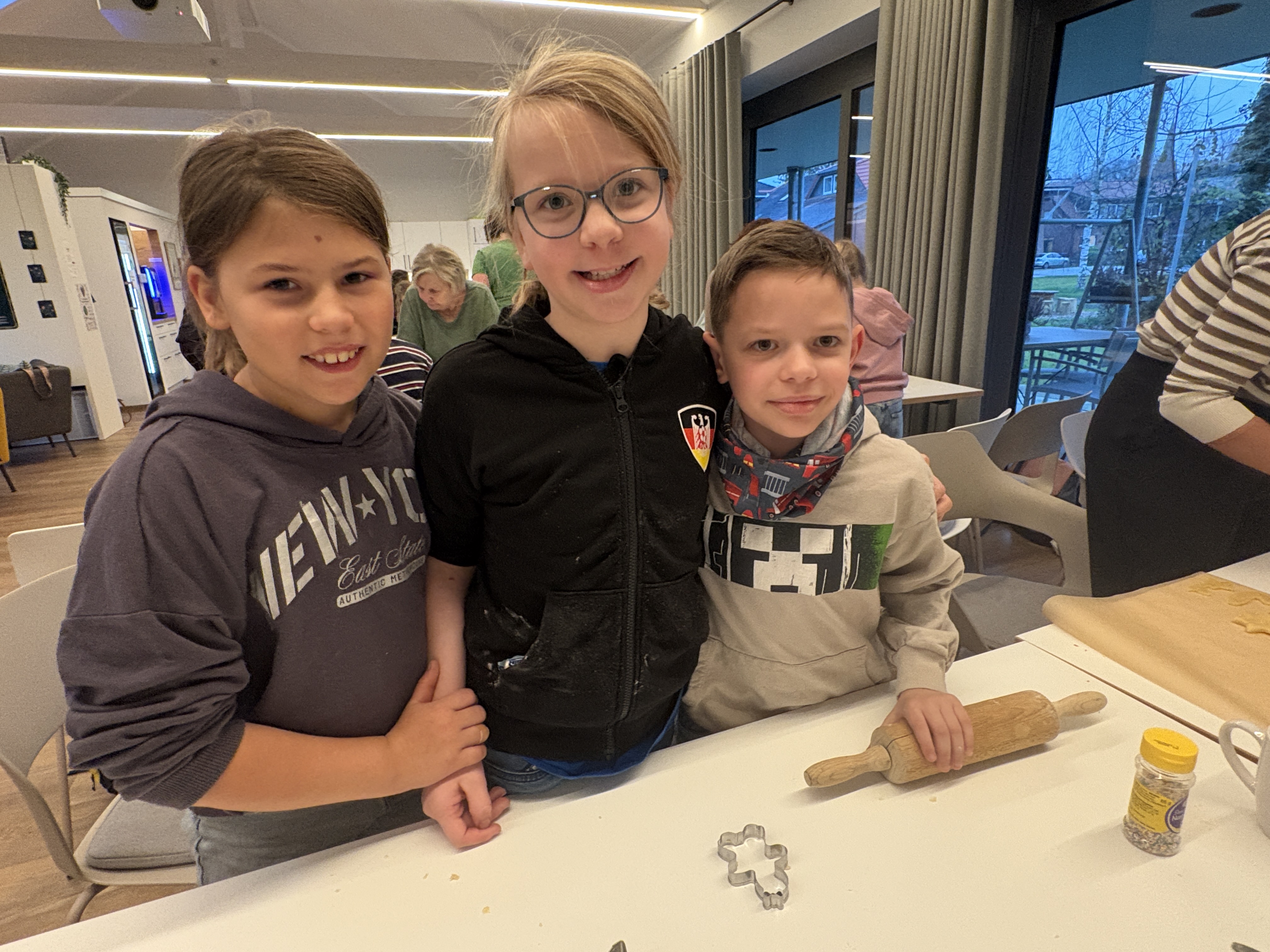 Am vergangenen Freitag haben wir uns auf den Weg zur Upkamer in Remels gemacht, um dort zusammen mit einigen Müttern aus unserer Klasse Kekse zu backen. Wir haben wie die Weltmeister gebacken und hatten viel Spaß beim Ausstechen und Keksteig Naschen. Während die Kekse im Ofen waren, haben wir gespielt oder in aller Ruhe gefrühstückt. Am Ende des Tages gingen wir mit vollen Bäuchen und zehn prall gefüllten Keksdosen zurück zur Schule. Nun können wir jeden Tag im Knusperkreis unsere selbstgebackenen Kekse genießen. Vielen Dank an alle Eltern, die uns an diesem Tag durch einen Teig oder durch Hilfe beim Backen unterstützt haben. Es war ein toller Tag!