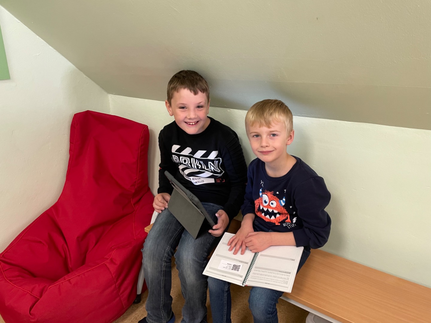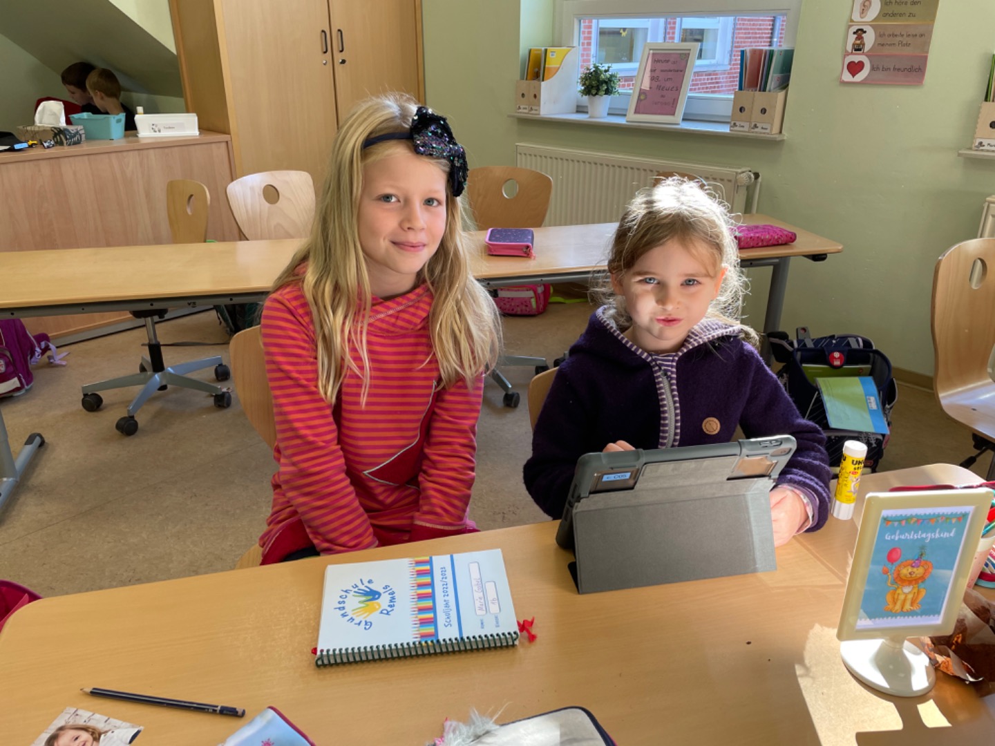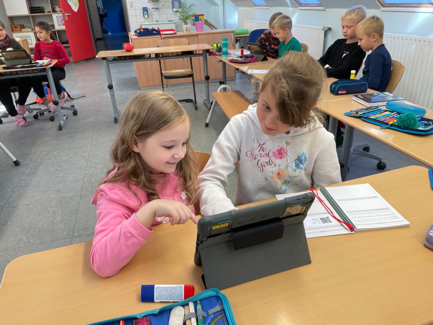 Heute haben wir das erste Mal mit dem Tablet Übungen zum A gemacht. Dabei haben uns unsere Paten geholfen. Das hat viel Spaß gemacht und wird sicherlich wiederholt.