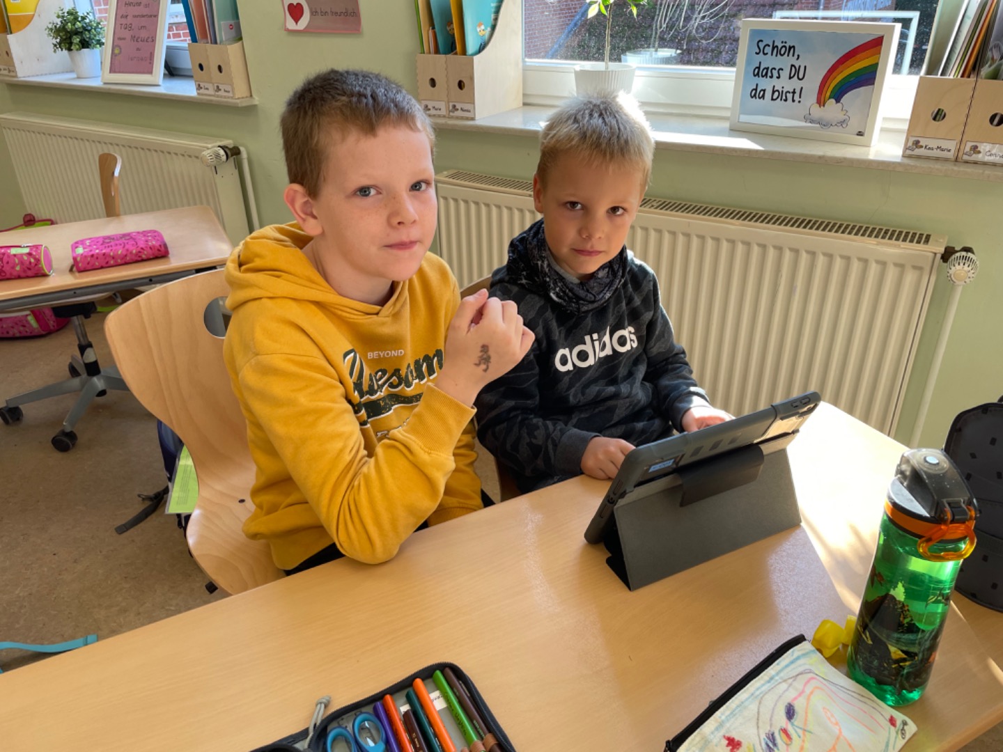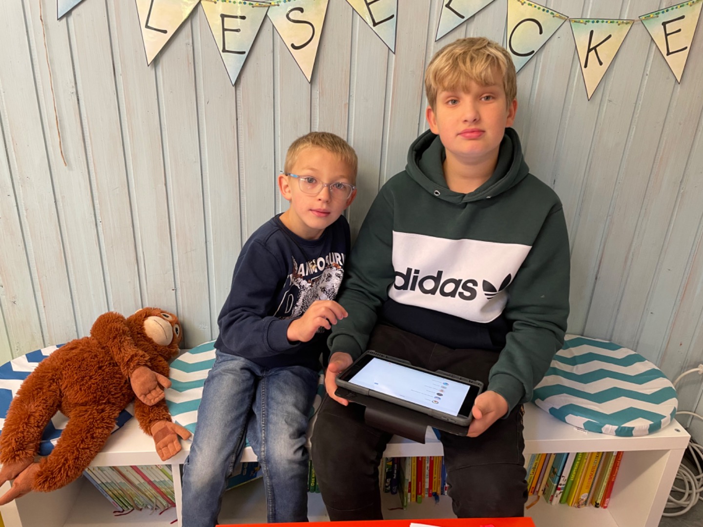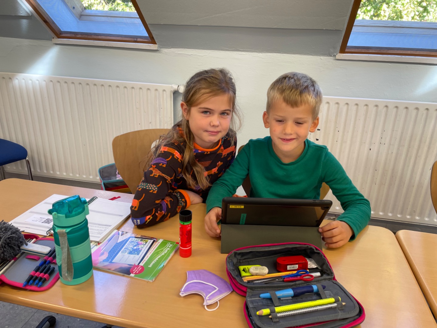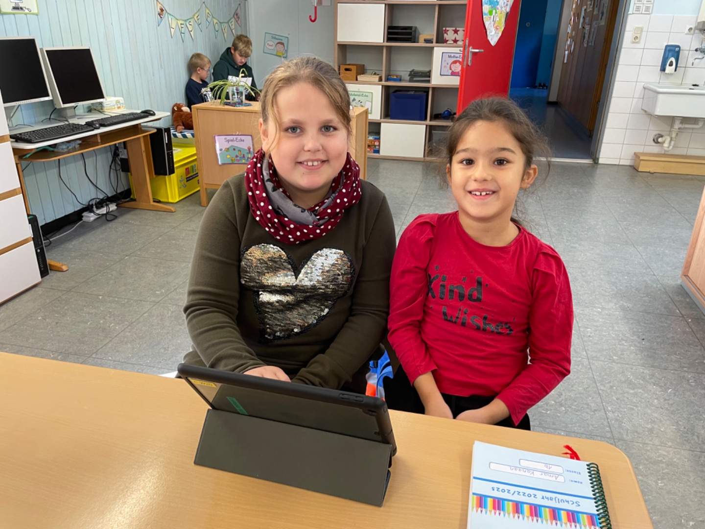 Heute haben wir das erste Mal mit dem Tablet Übungen zum A gemacht. Dabei haben uns unsere Paten geholfen. Das hat viel Spaß gemacht und wird sicherlich wiederholt.