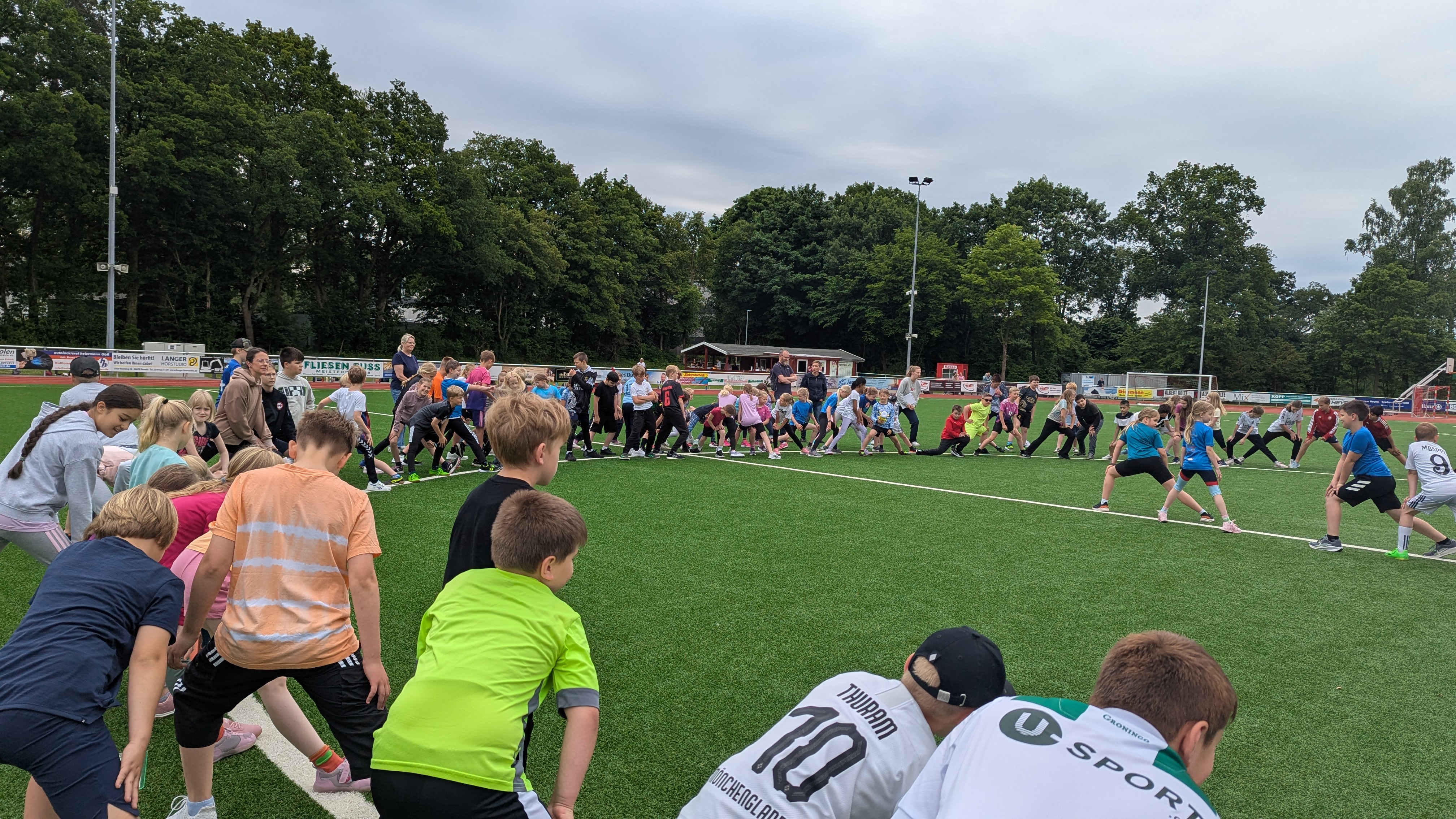 Nach einem kurzen gemeinsamen Aufwärmen und einem Geburtstagslied für Frau Drees starteten zunächst die Dritt- und Viertklässler. Viele Schüler schafften das Goldabzeichen und waren stolz auf ihre Leistungen. Das viele Training hatte sich gelohnt. Anschließend liefen die ersten und zweiten Klassen. Für viele war es das erste große Laufabzeichen, und die Aufregung sowie die Freude über den Erfolg waren groß.