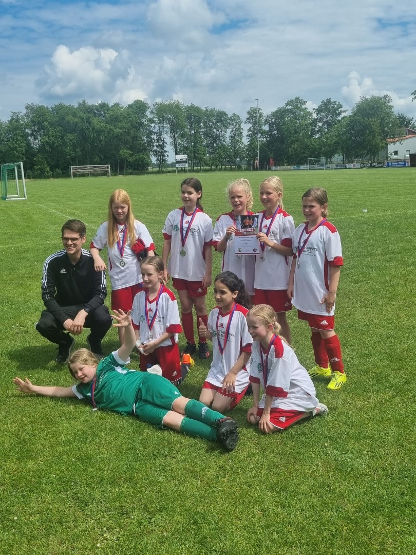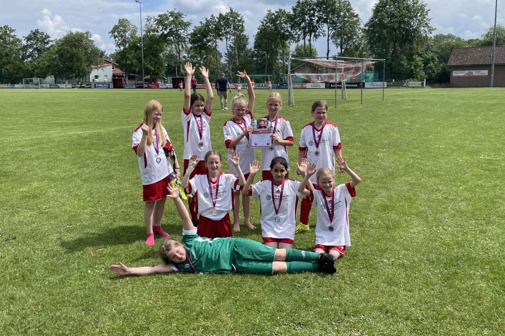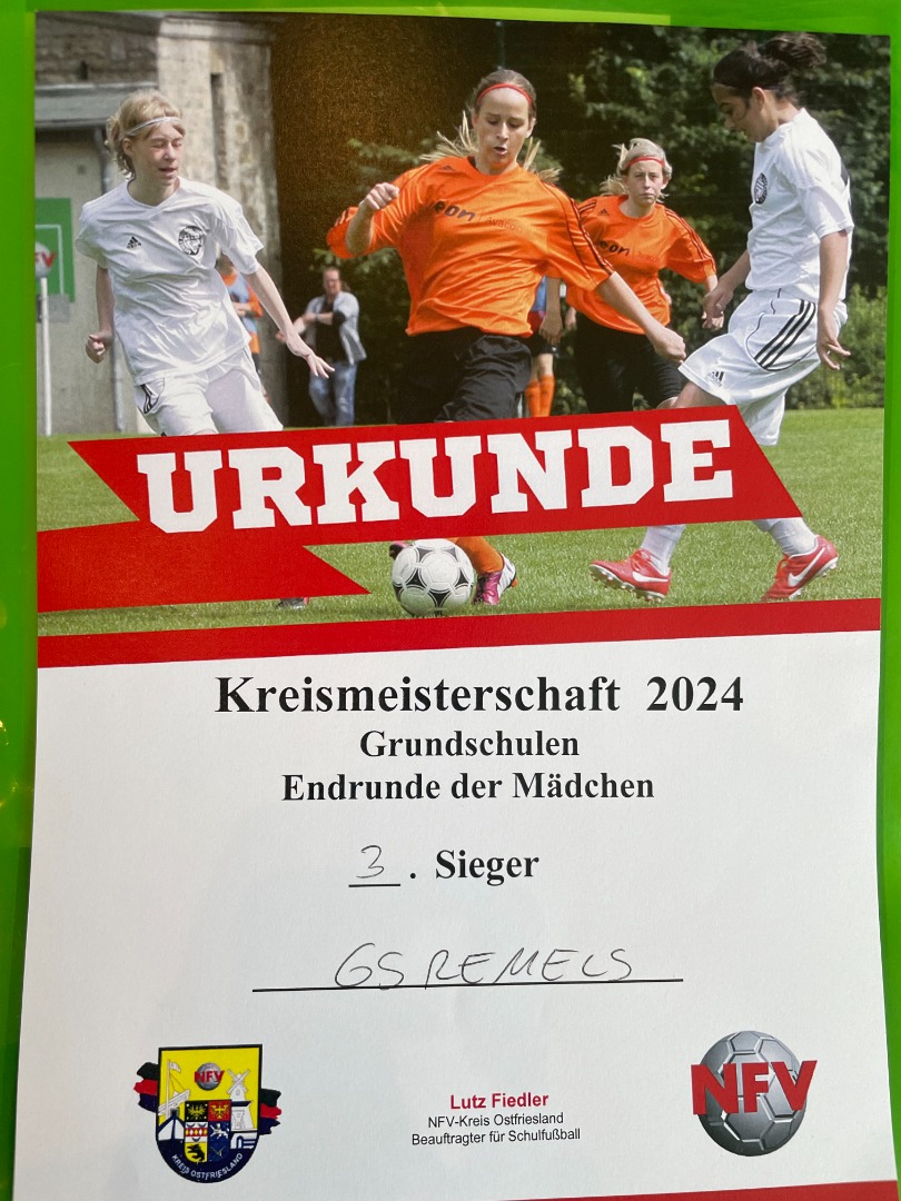 Beim Schulfußballturnier in Nortmoor haben unsere Mädchen den dritten Platz belegt. In der Gruppenphase gewannen wir vier unserer fünf Spiele (6:0, 3:0, 1:0 und 2:0) und mussten uns nur der Mannschaft aus Warsingsfehn-Ost knapp geschlagen geben (0:1). Im Halbfinale haben wir gut mitgehalten, aber am Ende 0:2 gegen die Grundschule aus Nortmoor verloren. Im Spiel um Platz 3 konnten wir dann dieses Mal gegen die Grundschule Warsingsfehn-Ost gewinnen (5:0). Es war ein richtig toller Tag mit ganz viel tollen Fußballspielen. <\/p>\r\n
