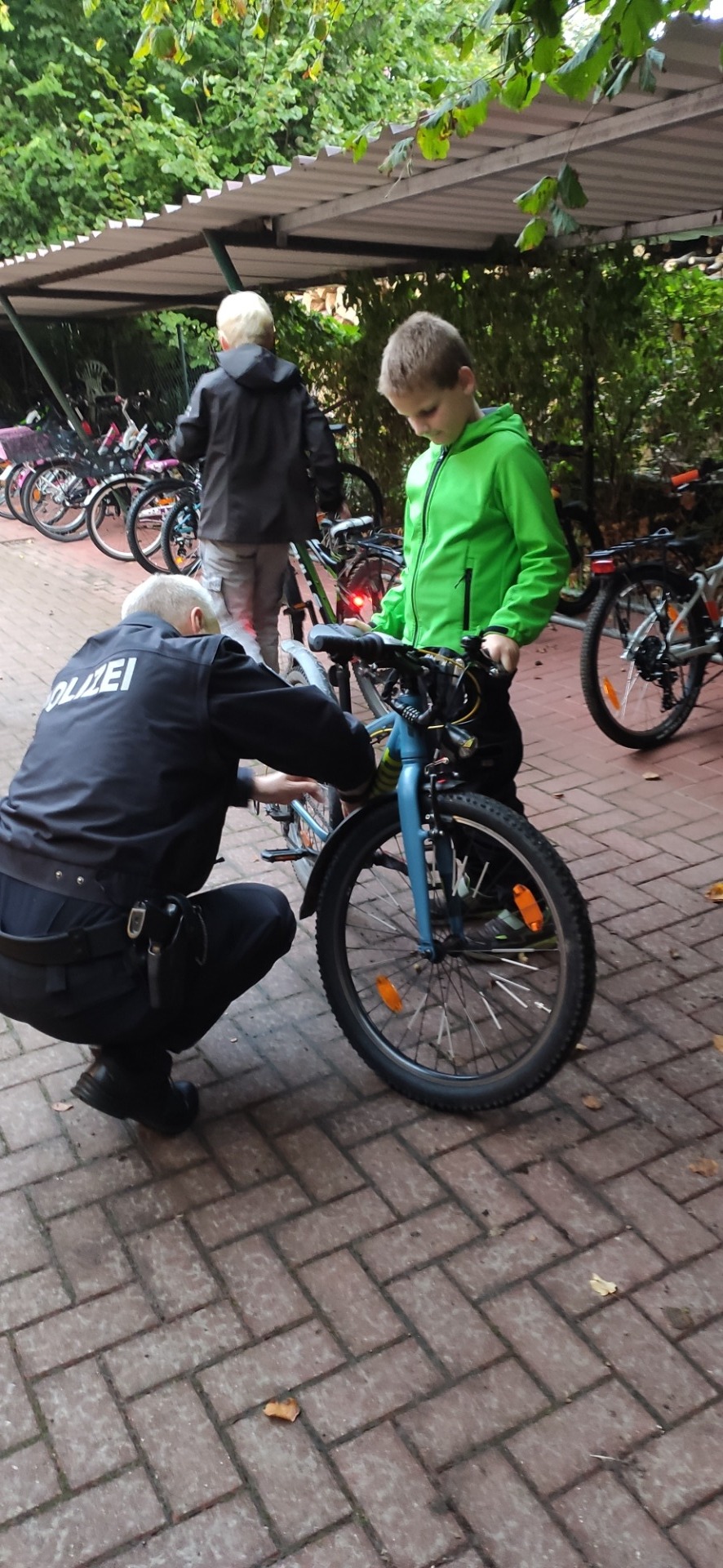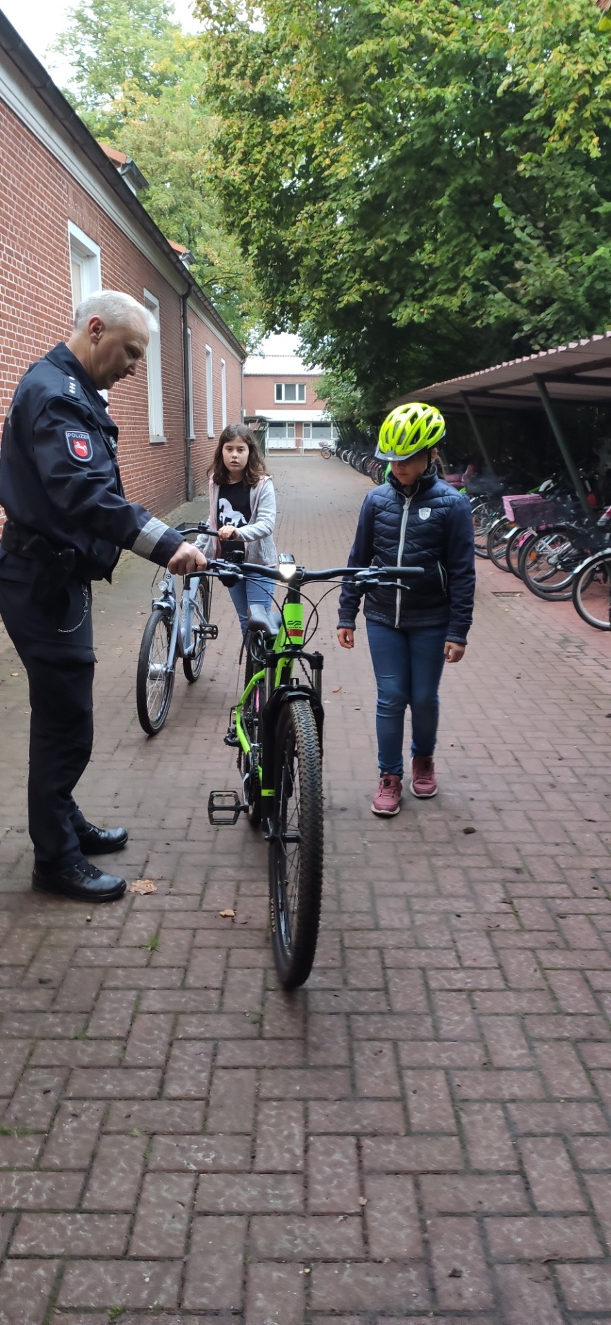 Im Rahmen eines klasseninternen Projekttags beschäftigten sich heute alle Kinder und ihre Lehrerinnen und Lehrer mit dem Thema nachhaltige Mobilität und Verkehr. Wir sprachen darüber, welche Verkehrsmittel wir auf dem Weg zur Schule nutzen oder ob unsere eigenen Füße uns zur Schule tragen. Wir tauschten uns über unsere Schulwege aus und ergründeten die Vor-und Nachteile der genutzten Verkehrsmittel. Gemeinsam mit dem Polizisten Herrn Franzen haben wir geprüft, an welchen Stellen wir die Straße gut einsehen und so sicherer überqueren können. Hier wurden gelbe Füße aufgesprüht. Außerdem überprüften die Polizisten alle Fahrräder auf Verkehrssicherheit, damit wir sicher mit dem Fahrrad zur Schule kommen. Zum Schluss besuchten alle Klassen auch noch eine Schulexpress-Haltestelle.<\/p>