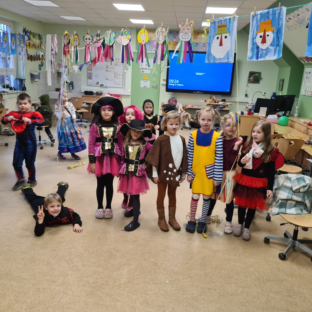 Heute wurde in der Schule kräftig Karneval gefeiert. Zwischen leckeren Naschereien und gesundem Essen fürs Buffet startete der Tag für uns erst einmal in der eigenen Klasse. Dort haben wir Spiele gespielt, vom Buffet genascht und die Zeit in unserer Klasse genossen. Zwischen 10 und 11 Uhr durften wir in der Schule verschiedene Angebote nutzen. Jede Lehrkraft hat ein tolles Angebot für uns vorbereitet. So konnten wir Dosenwerfen, mit Holzklötzen, Lego oder Eierkartons bauen, Gruppenspiele spielen, tanzen, Geschichten lesen, Zauberstäbe oder Masken basteln basteln und vieles mehr. Das war ein wunderschöner Tag und die Kostüme waren einfach toll. <\/p>